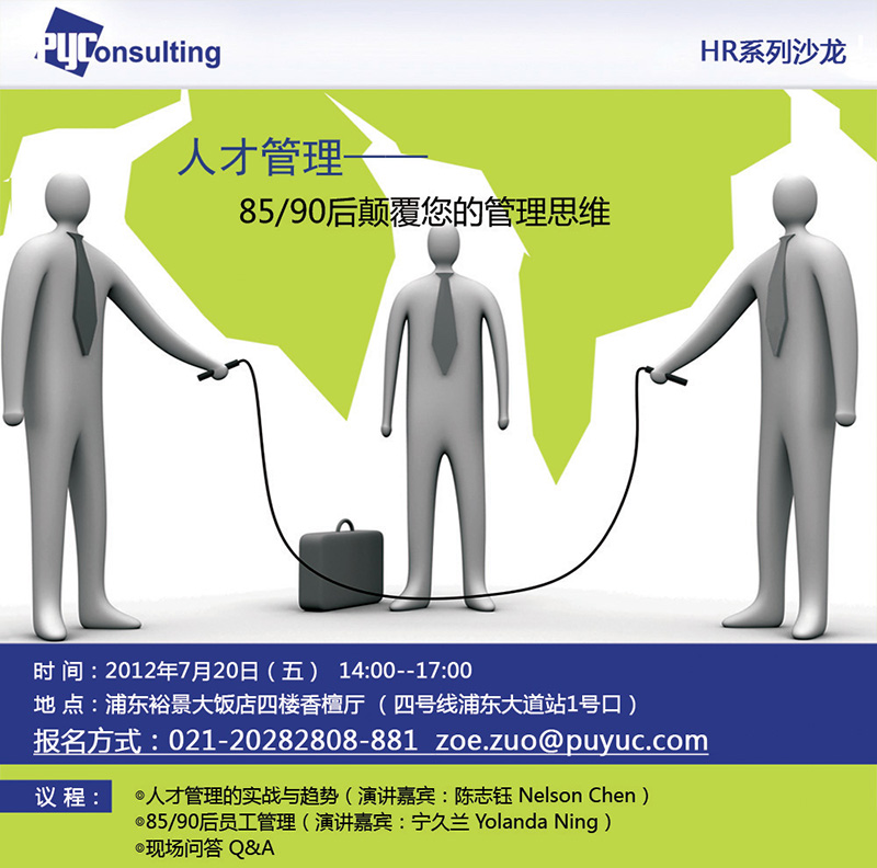 本次沙龍?zhí)匮葜v嘉賓是具有24年HR從業(yè)經(jīng)驗的資深人力資源專家陳志鈺(Nelson)老師,以及長期接觸并研究85/90后的寧久蘭(Yolanda)老師,他們將和大家一起探討人才管理和85/90后員工管理的話題。
