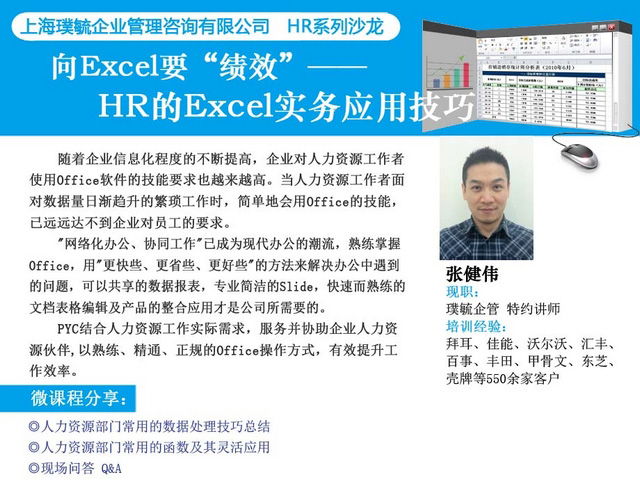 沙龍介紹: 隨著企業(yè)信息化程度的不斷提高,企業(yè)對人力資源工作者使用Office軟件的技能要求也越來越高。